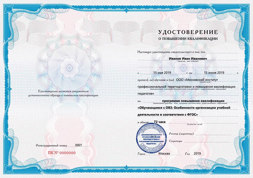 По окончании курсов повышения квалификации выдается документ о квалификации, удостоверение установленного образца. Удостоверения защищены от подделок специальным водяным знаком в соответствии с лицензией на ведение образовательной деятельности.